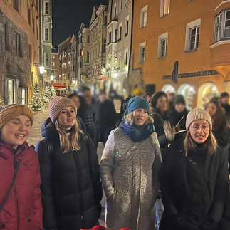 Am 9. Dezember 2023 durften wir erstmals auf der Märchenbühne am Vier-Viecher-Eck am Innsbruck Christkindlmarkt auftreten. Dafür hatten wir uns etwas Neues überlegt. Und weltbekannte American Christmas Classics🎅 und traditionelle englische Carols ☃️ einstudiert. Auch unser wunderbares Quartett (Jolanda, Johanna, Pia und Lisa) sangen einige sehr coole jazzige Weihnachtslieder. Es war uns ein Fest🎄!